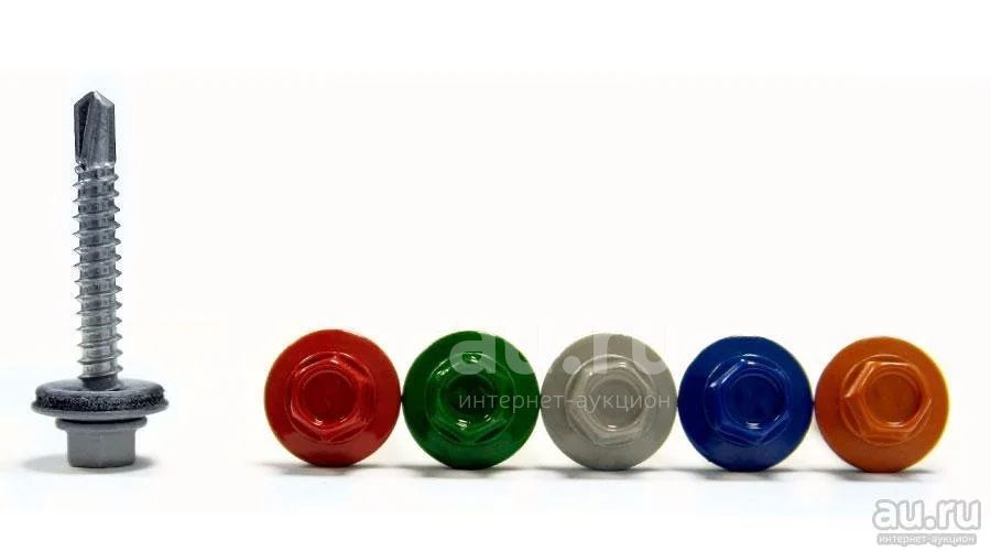 Цветные кровельные саморезы существуют с остроконечным и буровидным сверлом. К металлической обрешетке кровельные листы рекомендуется крепить окрашенными саморезами с наконечником "сверло", к деревянной — саморезами с остроконечным сверлом. Окрашенный кровельный саморез поставляется в комплекте с шайбой EPDM с резиновой прокладкой.