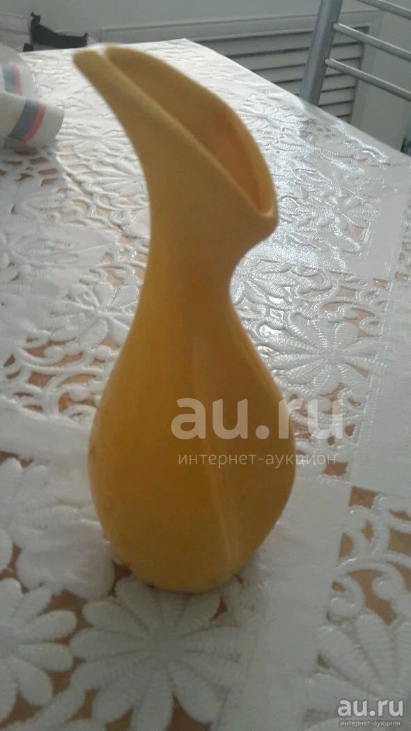 Желтая глиняная вазочка.17см высота.