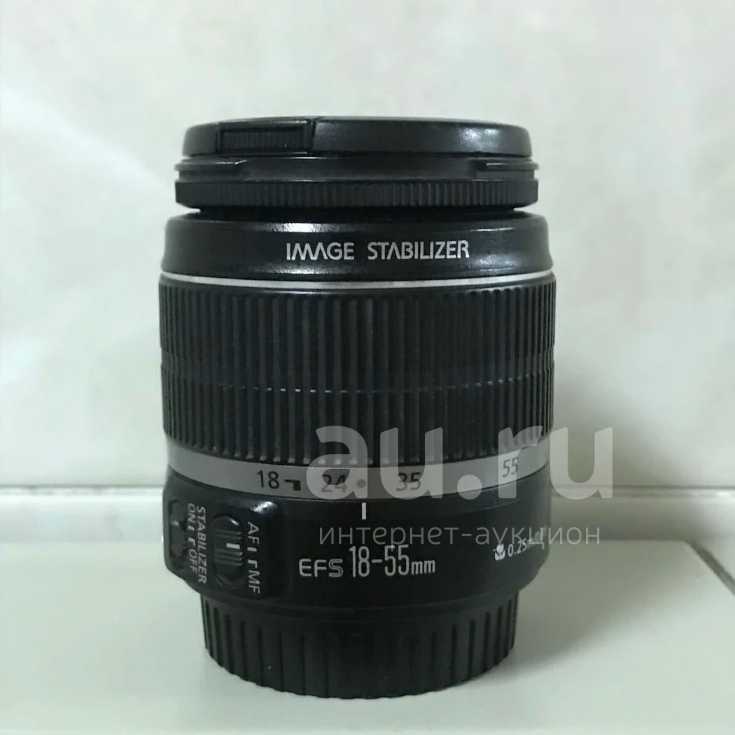 Canon 18-55 IS F 3.5-5.6 EF-S — китовый объектив со стабилизатором. Подойдет в качестве первого объектива для кропнутой цифрозеркальной камеры, имеет удобный диапазон фокусных расстояний. Не может похвастаться огромным зумом, но качество изображения довольно неплохое.