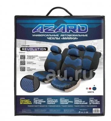 Универсальные чехлы-майки на сидения автомобиля. Полностью закрывают сидения автомобиля. Снабжены молниями для использования в салонах с раздельным задним рядом сидений. Чехлы надежно прилегают к автокреслам и не собираются в процессе эксплуатации. Применимы в автомобилях с боковыми подушками безопасности (AIR BAG). Материал триплирован огнеупорным поролоном 2 мм, за счет чего чехол приобретает дополнительную мягкость и устойчивость к возгоранию. Авточехлы майки Azard Revolution износоустойчивы и легко стирается в стиральной машине. Рекомендуется стирка в деликатном режиме.