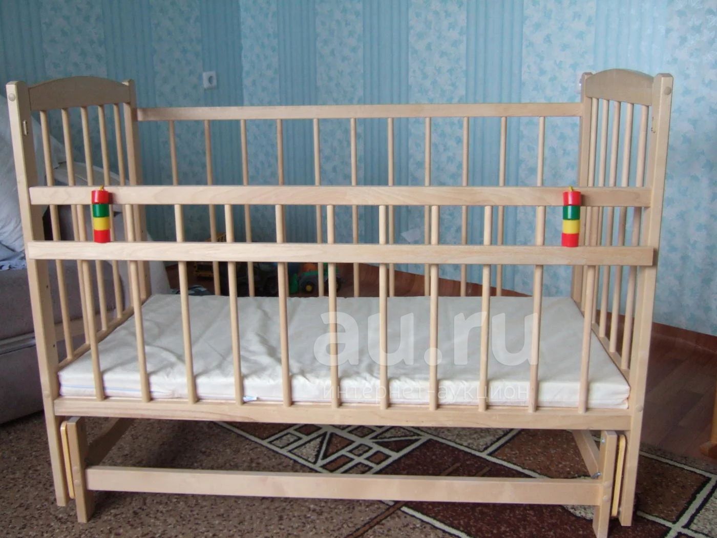 Детская кровать с поперечным маятниковым механизмом качания, высота дна регулируется (3 уровня).