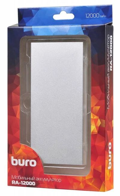 Внешний аккумулятор Buro RA-12000-AL 2.1A + 1A 12000mAh серебро Новый