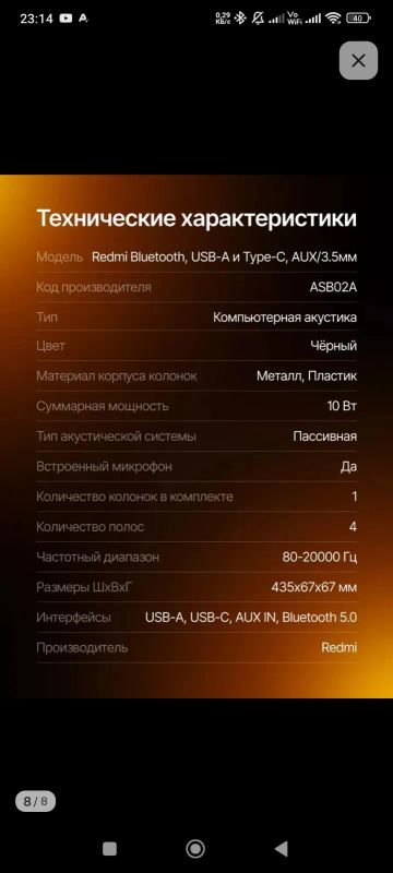 Тип питания акустической системы